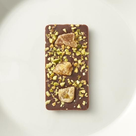 ベトナム産トリニタリオ種カカオのミルクチョコレートです。フルーツの香りとほのかな酸味に強いキャラメルテイストが特徴です。生産量が世界の1%ととても希少です。ベトナム産カカオが注目されるきっかけとなったのは、パリで開催されるチョコレートの祭典、サロン・デュ・ショコラ。ベトナム産のカカオ豆が「インターナショナル・カカオ・アワード」の「カカオ・オブ・エクセレンス」を受賞したことに始まり、今ではオランダやベルギー、フランスのチョコレートメーカーもベトナムに加工工場を設立するほど、ベトナム産カカオは世界的に期待されています。ピーチとピスタチオを合わせたクリミーな味わいです。